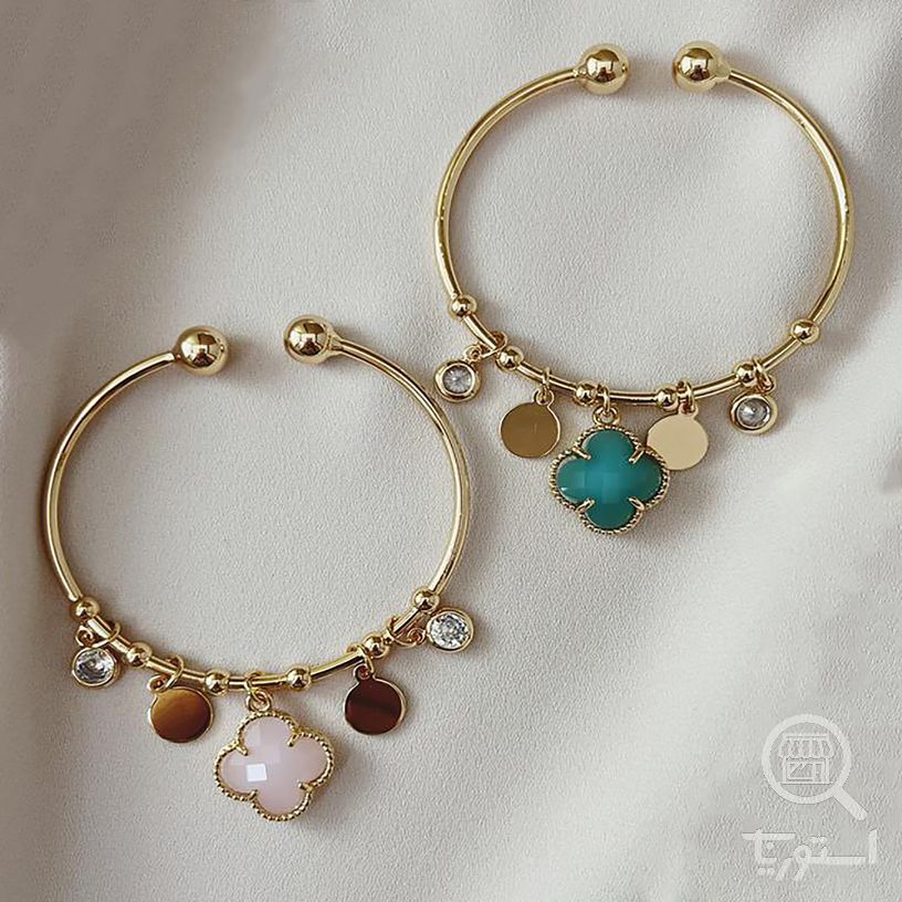 دستبند زنانه مدل بنگل آویز شبدر و ونکلیف