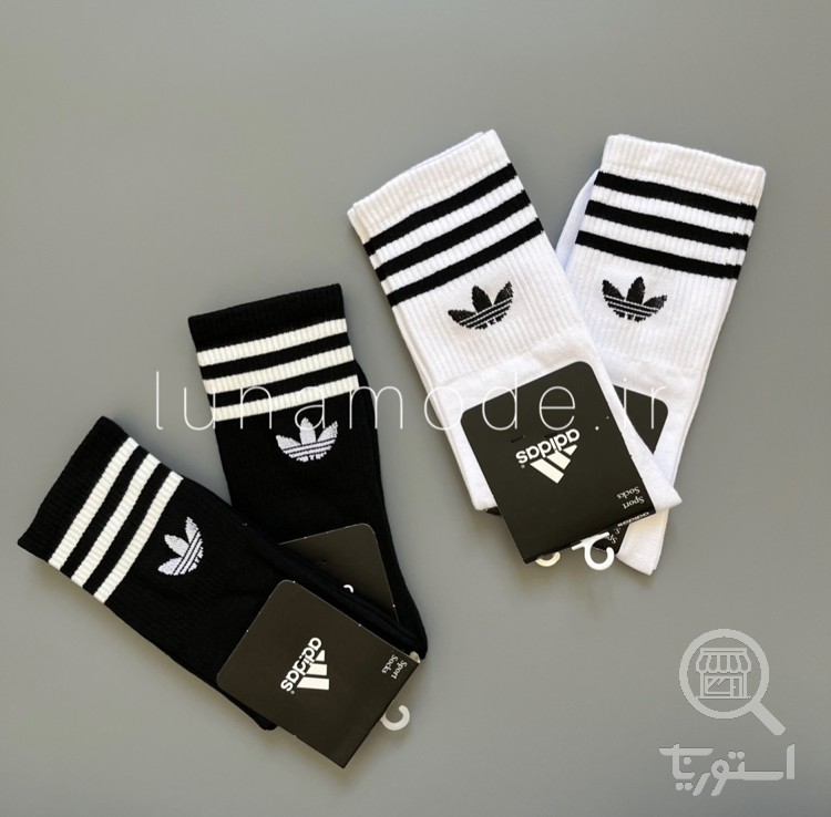 جوراب ساقدار زنانه طرح آدیداس سفید و مشکی