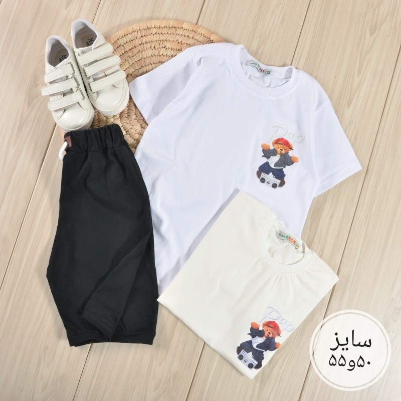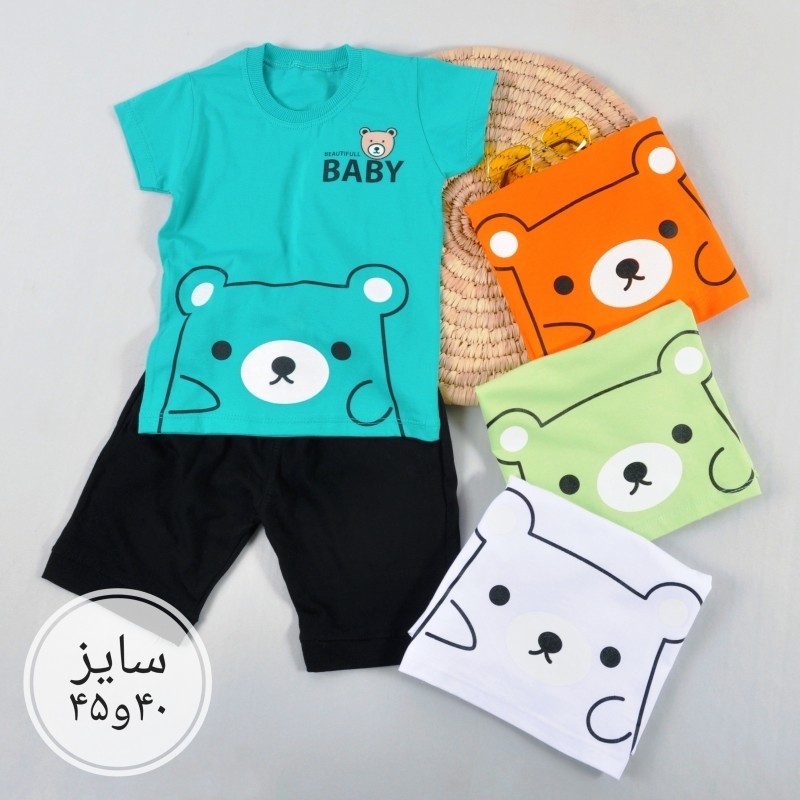 ست تیشرت و شلوارک بچگانه خرس خطی (40-45) کد 5336