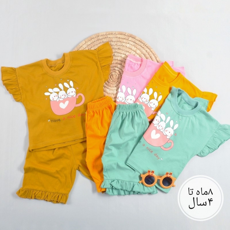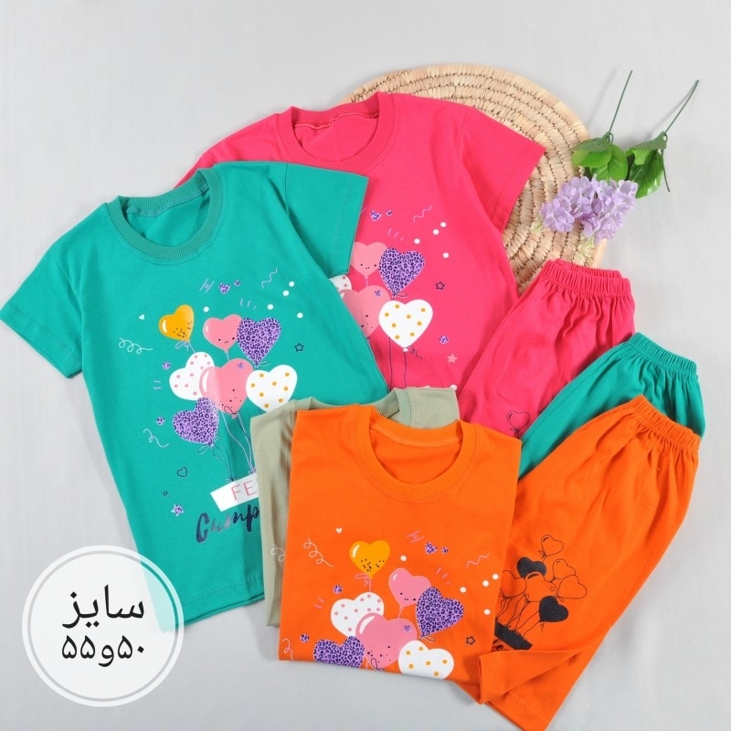 ست دخترانه تیشرت و شلوارک بادکنک (50-55) کد 8235