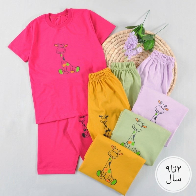 ست تیشرت و شلوارک بچگانه زرافه رنگی کد 8234