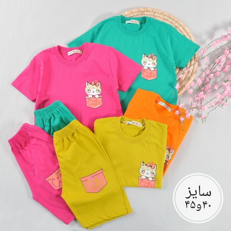 ست تیشرت شلوارک دخترانه جیب گربه (40-45) کد 8237