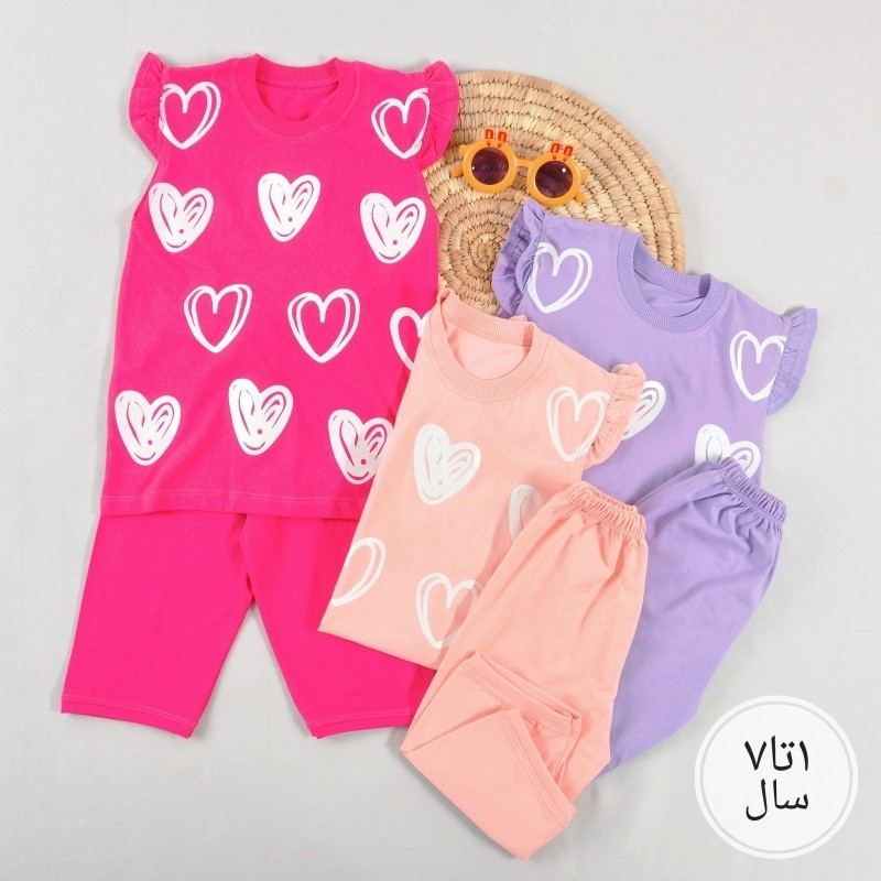 ست تاپ و شلوارک دخترانه قلب کد 8252