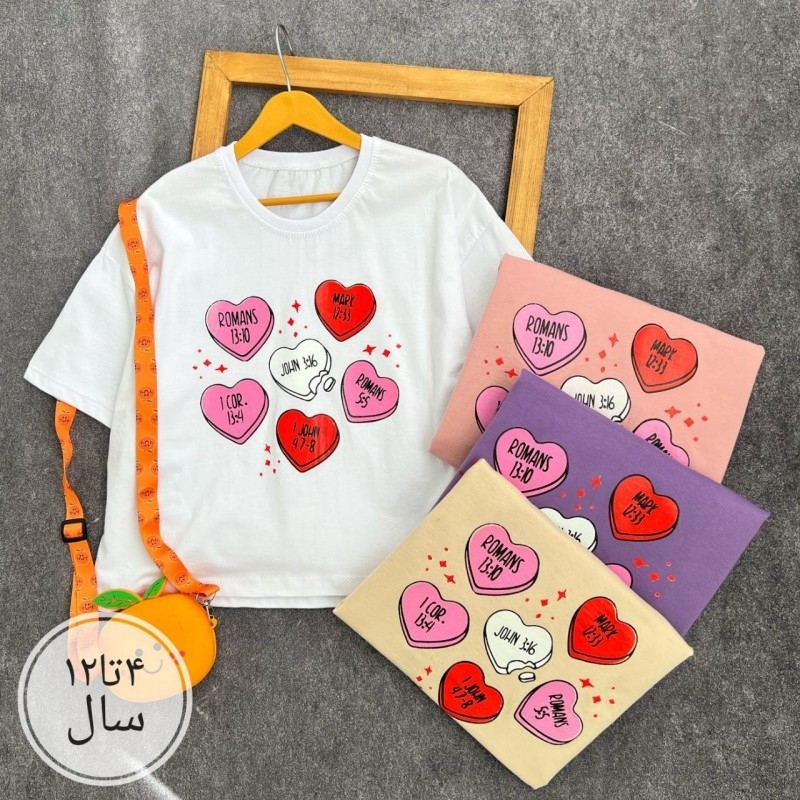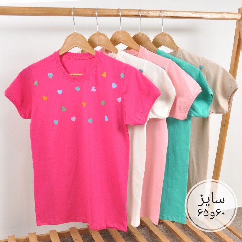 تیشرت دخترانه قلب های رنگی کد 5423