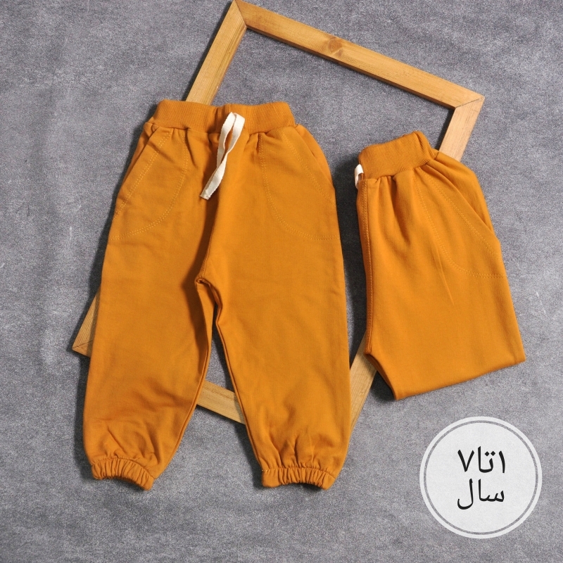 شلوار اسلش بچگانه بندکنفی حنایی کد 7229