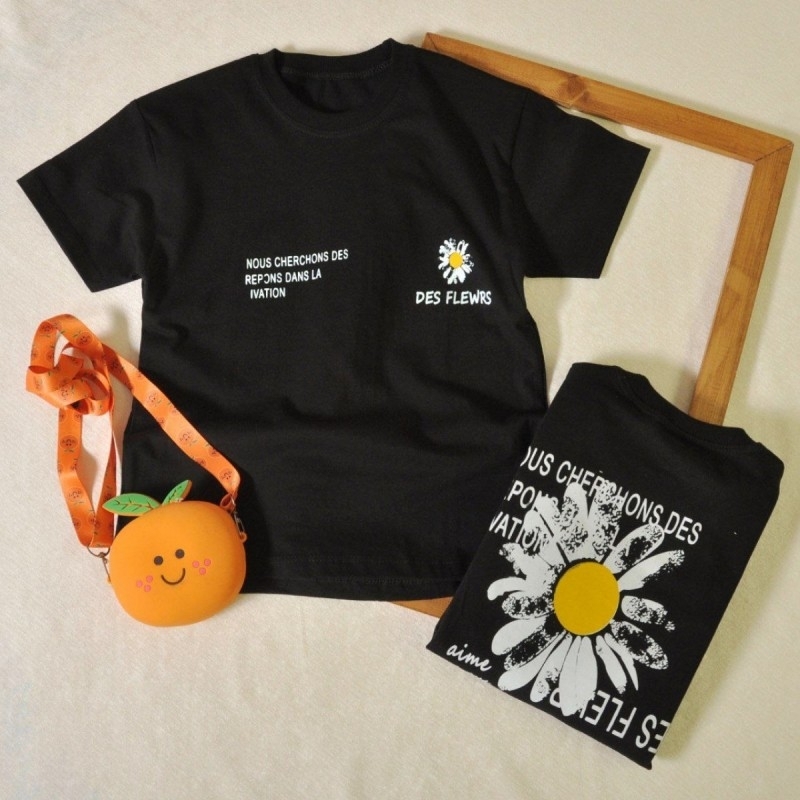 تیشرت دخترانه لش بابونه مشکی کد 5511