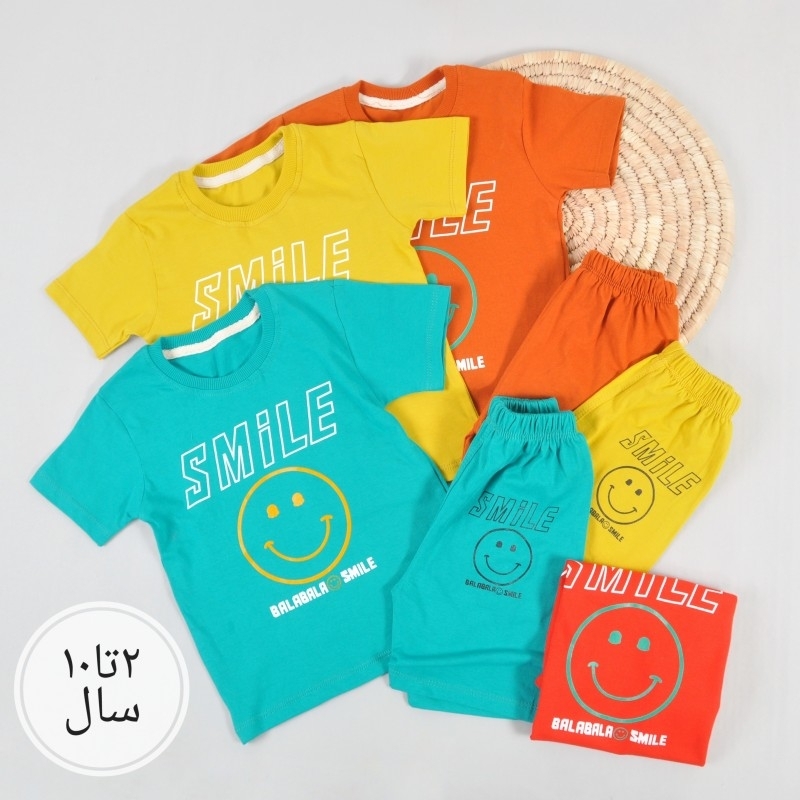 ست تیشرت شلوارک بچگانه ایموجی خندان (40-45-50-55) کد 8222