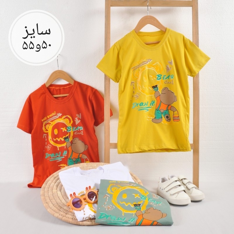 تیشرت بچگانه خرس نقاش (60 55 50) (ایراد دار) کد 5326