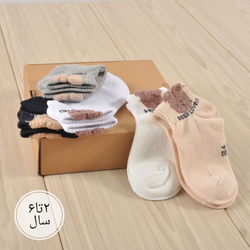 جوراب بچگانه سفید برفی خرسی کد 4019