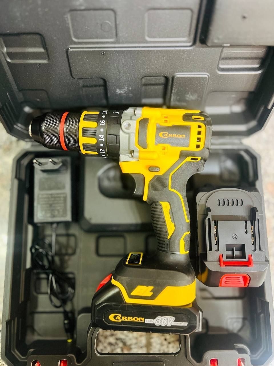 دریل شارژی 36 ولت چکشی براشلس سه نظام فلزی کربن مدل KB-36B