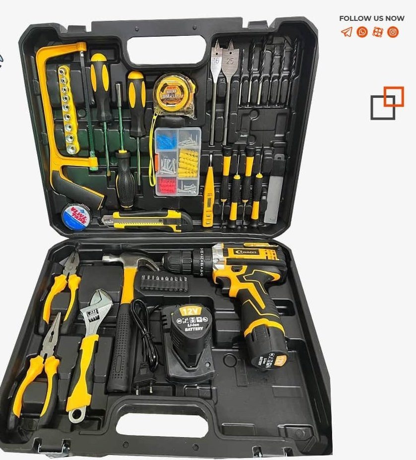جعبه ابزار و دریل شارژی (کیت کامل) 100عددی کربن مدل pc-100kit