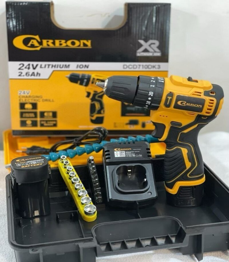 دریل شارژی 24 ولتی براش لس چکشی کربن دو باطری 6 ماه گارانتی مدل 24V