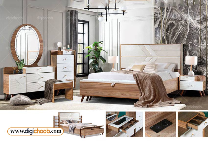 تخت خواب دو نفره مدرن کشودار الگانت