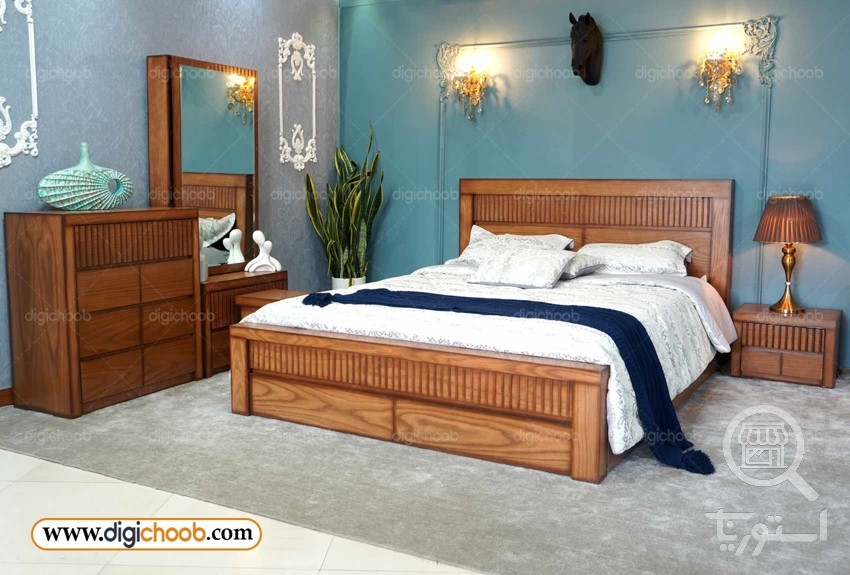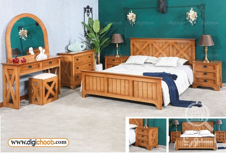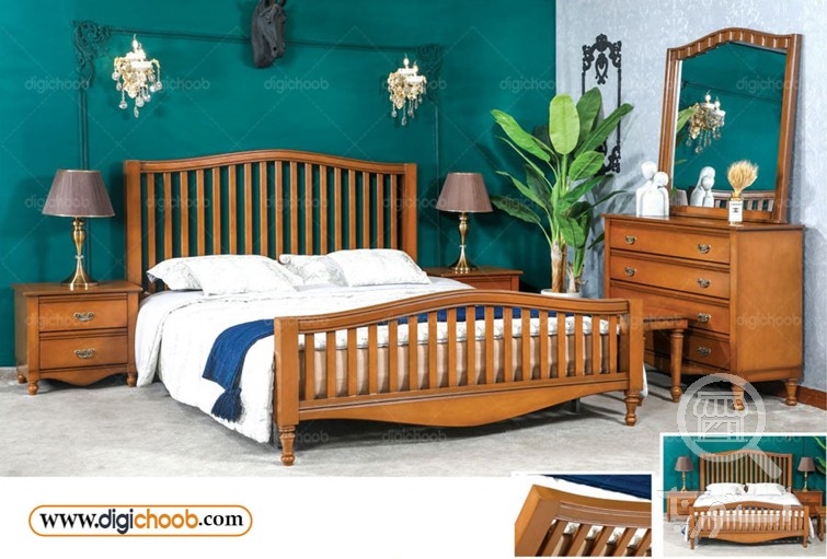 سرویس خواب دو نفره روکش چوب طبیعی چوب آرما