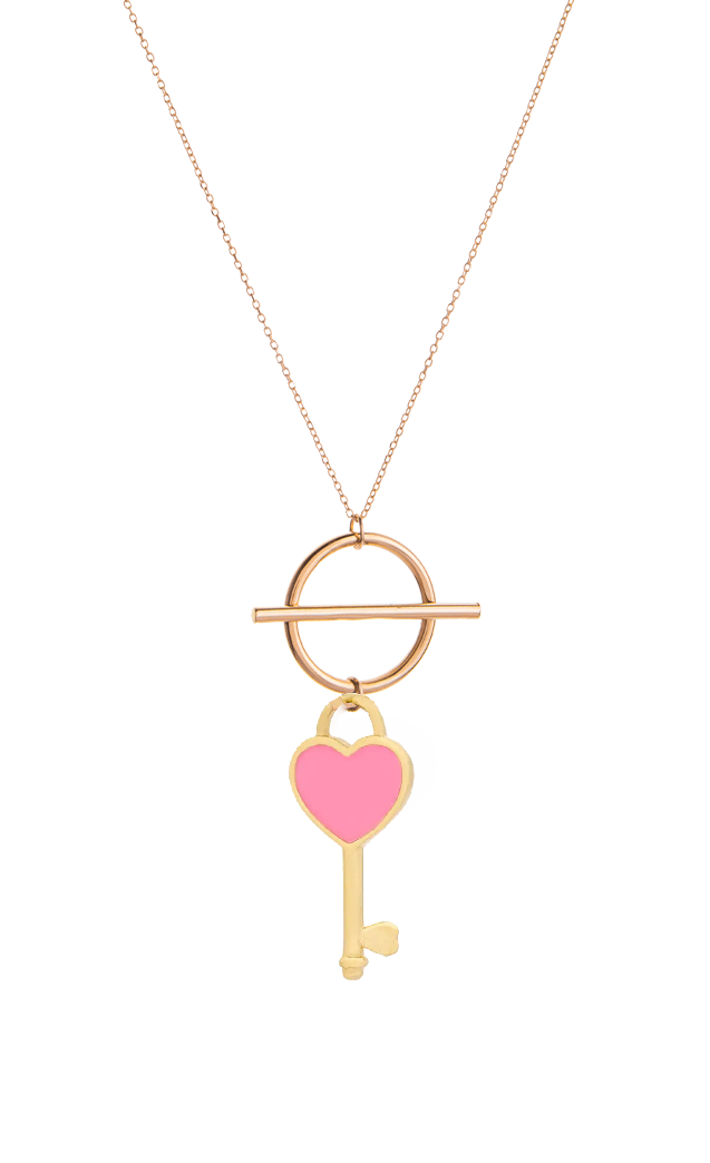 گردنبند طلا 18 عیار اپال گلد مدل مونیک کلید قلب صورتی