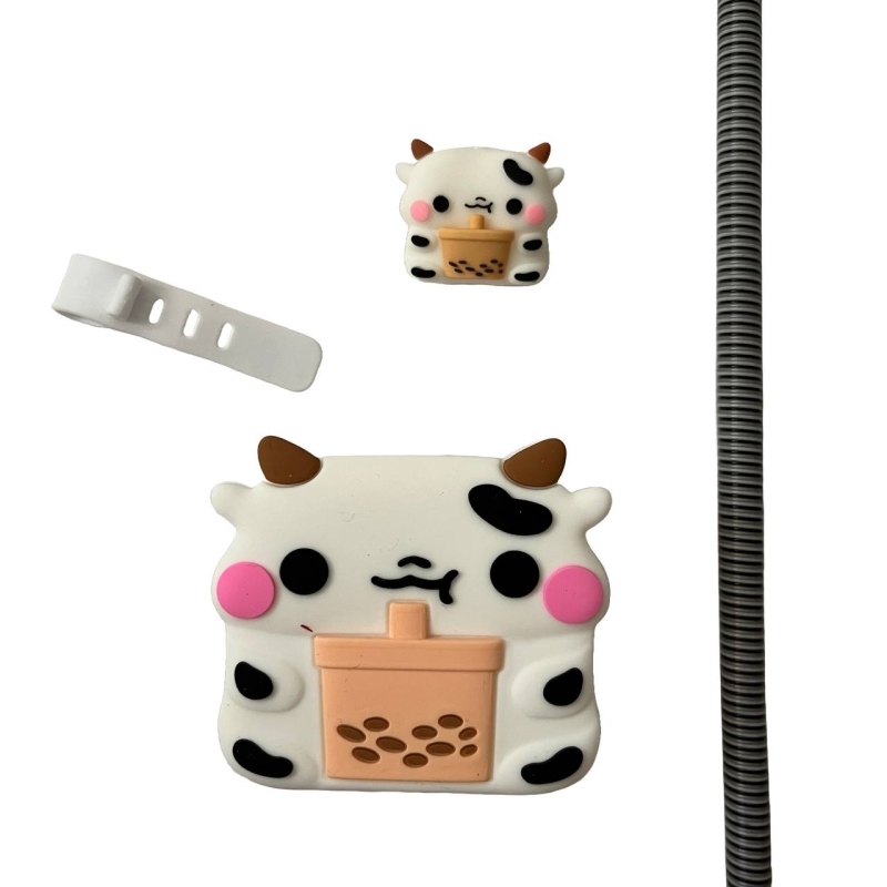 محافظ کابل شارژ طرح گاو مدل Silicon به همراه محافظ شارژ دیواری مجموعه 4 عددی