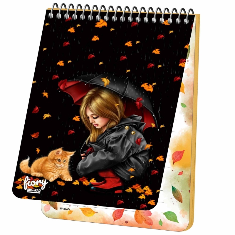 دفترچه یادداشت مسترراد طرح دختر پاییز و گربه مدل فانتزی کد fiory 1756