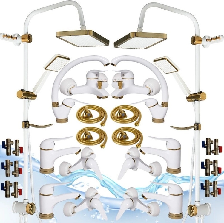 ست30عددی شیرآلات سفید طلایی لاله با علم دوش اتومات
