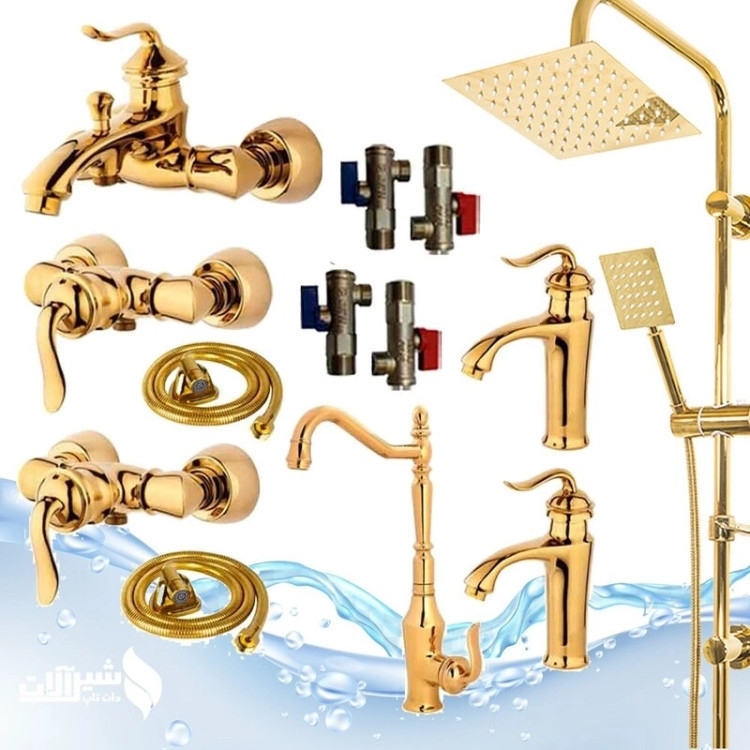 ست شیرآلات آیدا مدل بامبو طلا رپلاس مجموعه 9 عددی