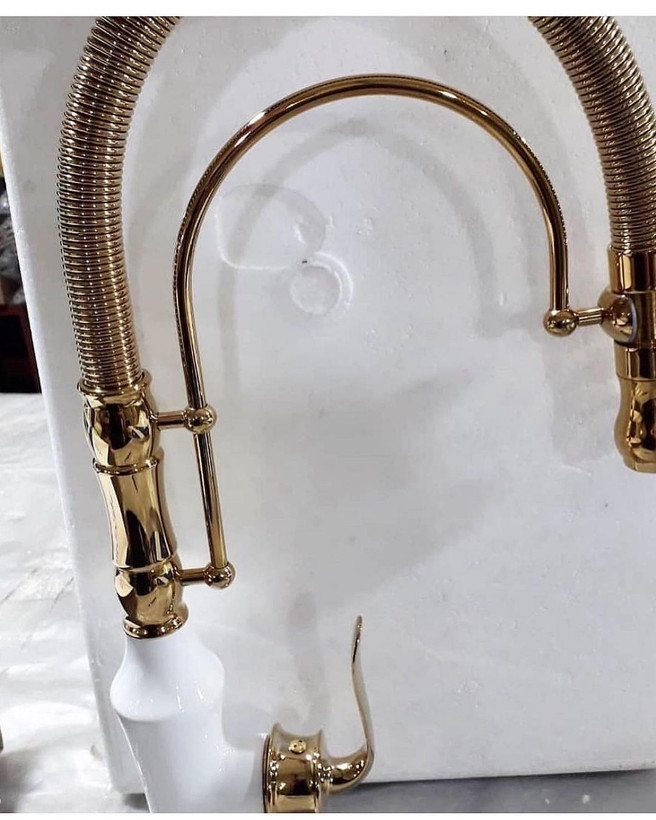 ست شیرالات مدل بامبو با ظرفشویی فنری همراه با علم دوش یونیورست رنگ سفید طلا