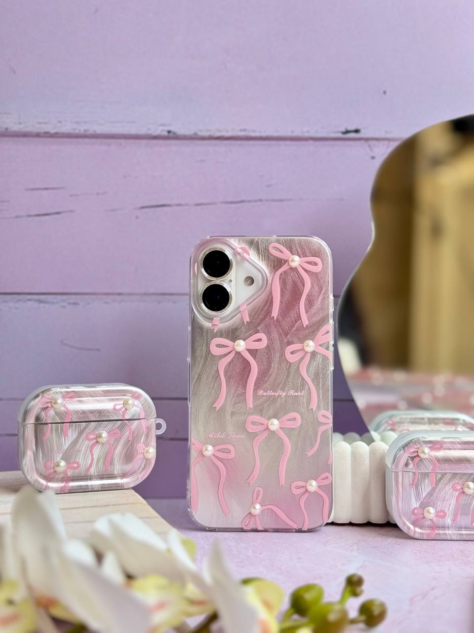 قاب پاپیون سفید آینه ای آیفون و اندروید (کدC2024)