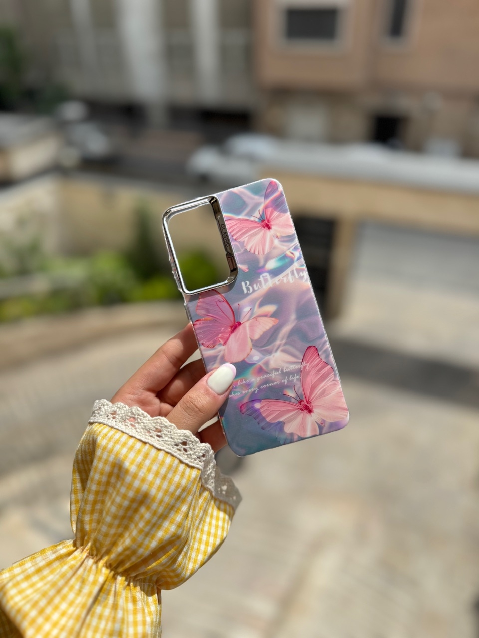 قاب پاپیون صورتی شاین آیفون ، سامسونگ ، شیائومی (کدC2059)