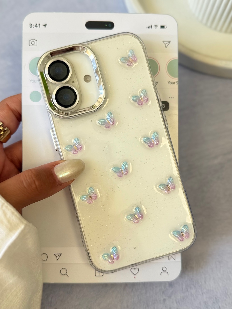 قاب نقاشی پروانه آینه ای با آویز آیفون (کدC2056)