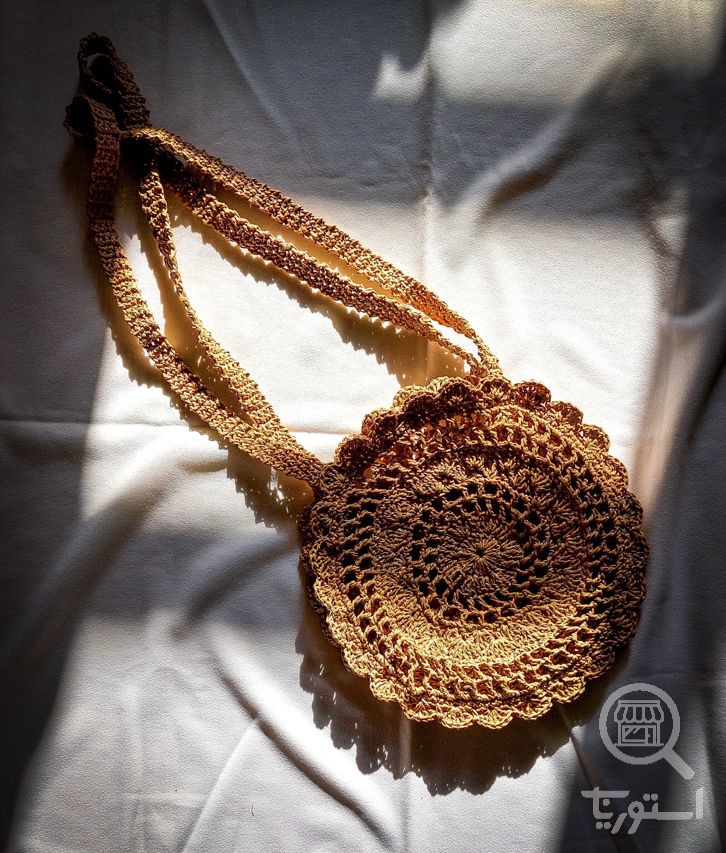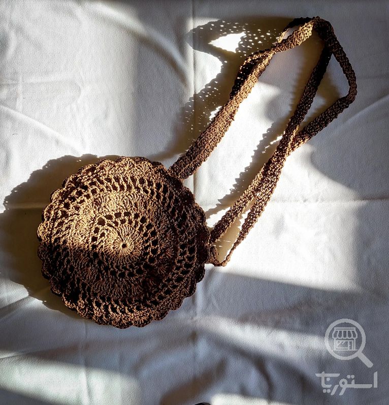 کیف گرد ساحلی دست بافت حصیری رافیا رنگ قهوه ای