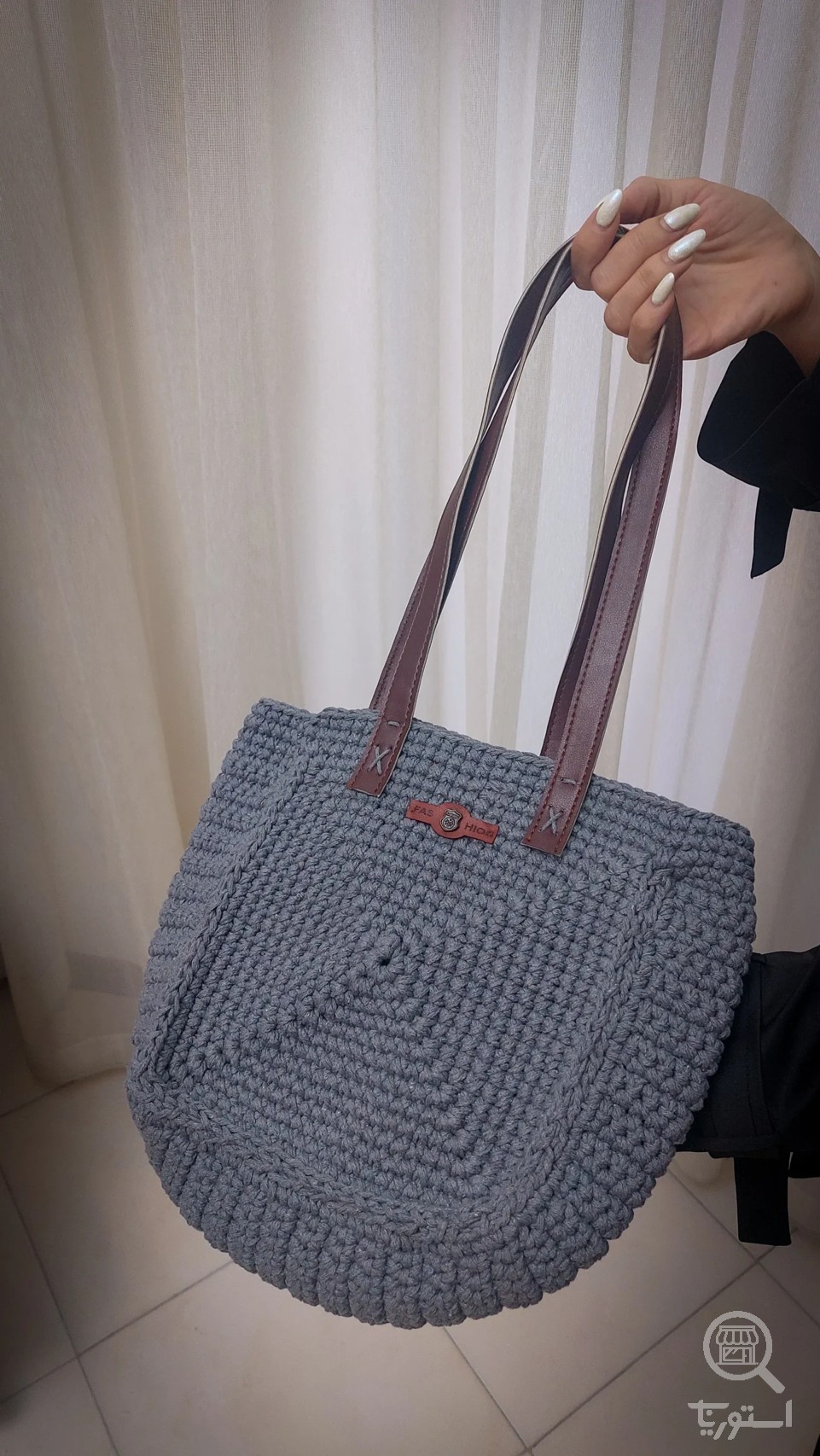 کیف دوشی مکرومه کتان رنگ طوسی