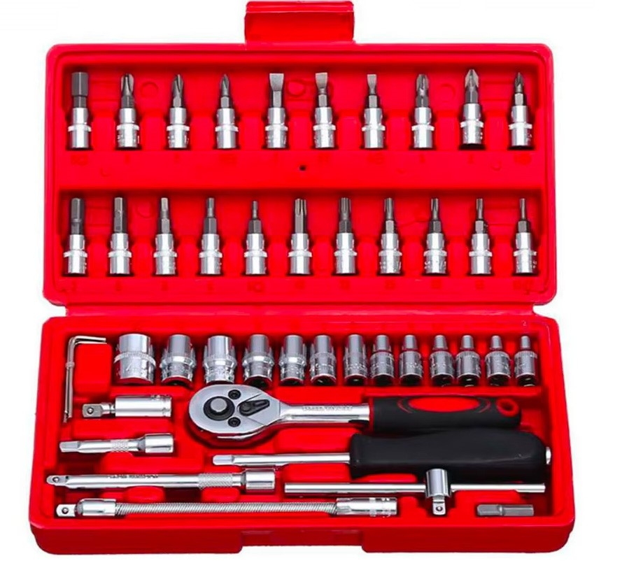 جعبه 46 پارچه آچار و سری بکس و پیچ گوشتی و جغجغه