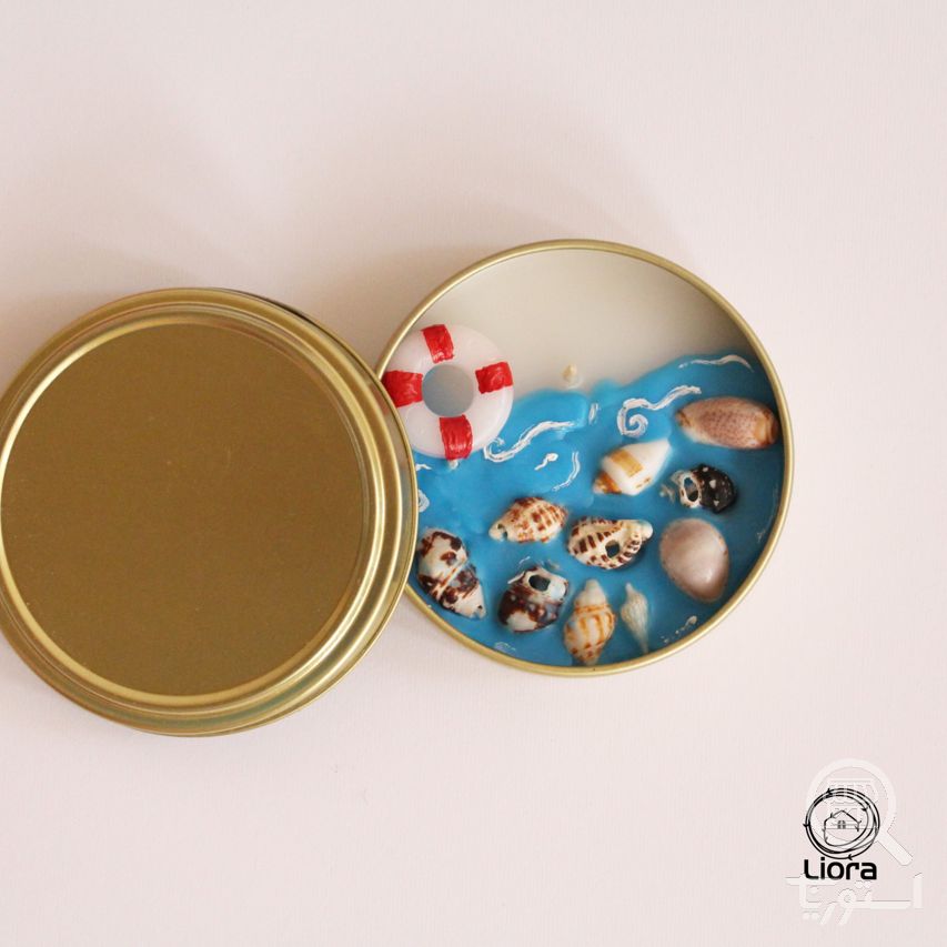 شمع دست ساز جعبه فلزی لیورا مدل ساحل طلایی کد 3023