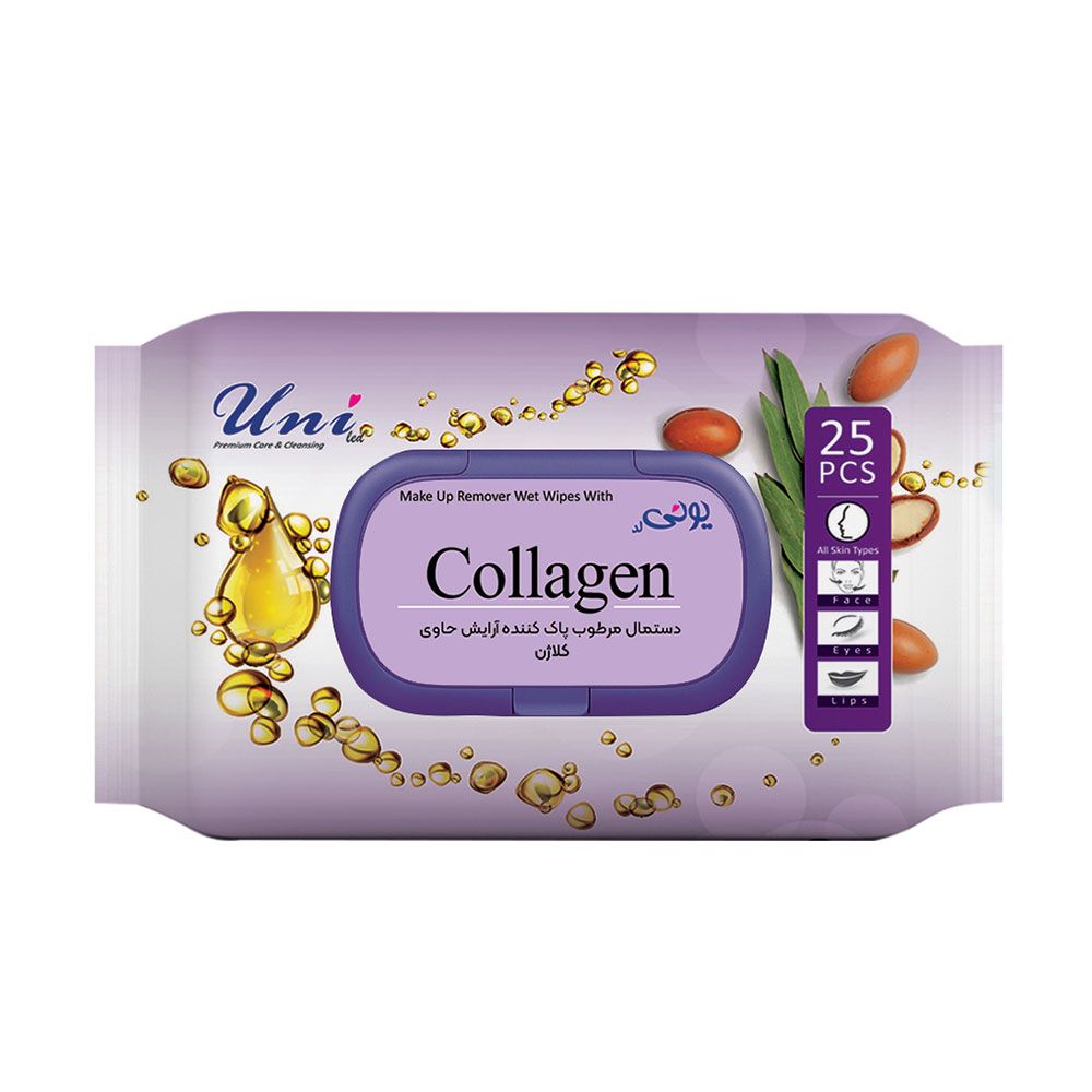 دستمال مرطوب پاک کننده آرایش حاوی کلاژن 25 برگی یونی لد