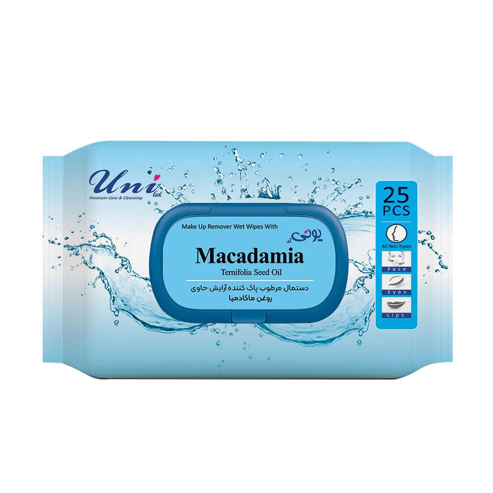 دستمال مرطوب پاک کننده آرایش حاوی روغن ماکادمیا 25 برگی یونی لد