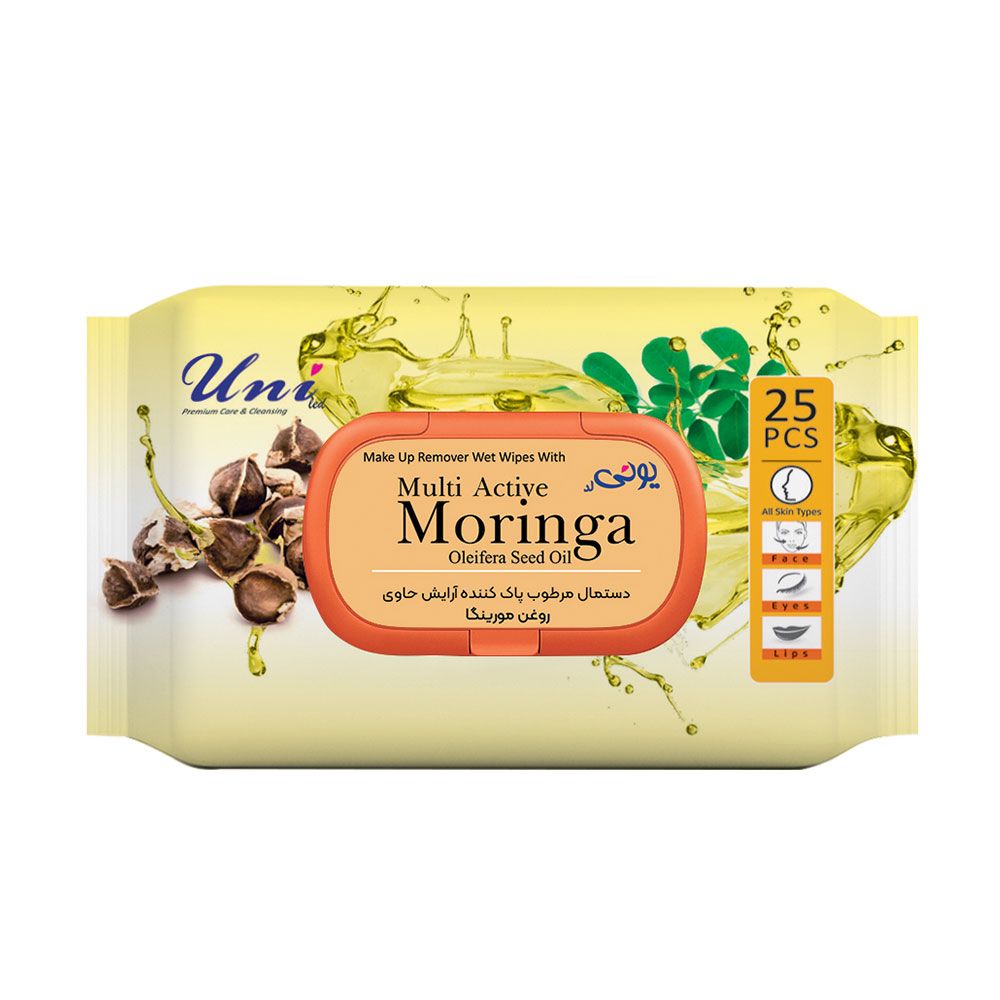 دستمال مرطوب پاک کننده آرایش حاوی روغن مورینگا 25 برگی یونی لد