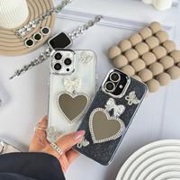 قاب شاینی قلب آینه ای با محافظ لنز رینگی نگینی (کدC1889)