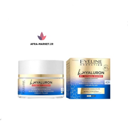 کرم مرطوب کننده و آبرسان قوی+40 سال اولاین EVELINE مدل هیالورونیک اسید و ویتامین B5 حجم 50 میل