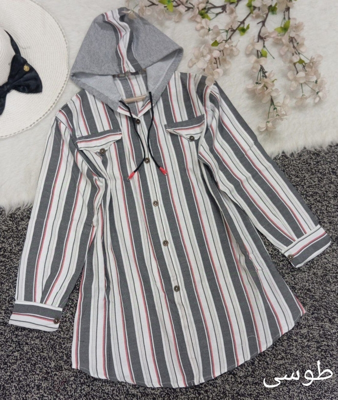 مانتو راه راه کلاه دار 93562