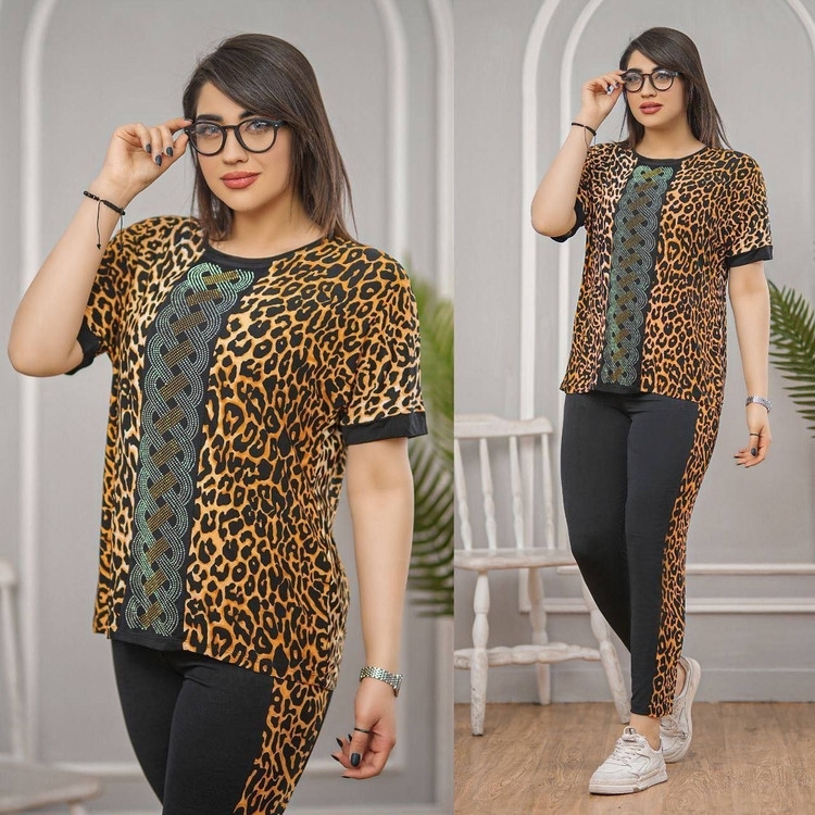 ست تیشرت شلوار وسط نگینی کد 7826