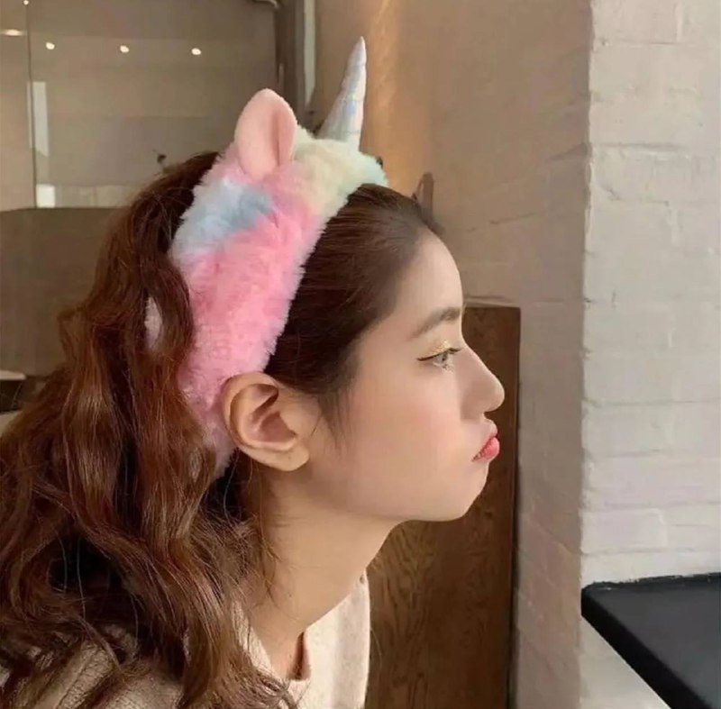 هدبند حوله ای دخترانه مدل تک شاخ یونیکورن با کیفیت