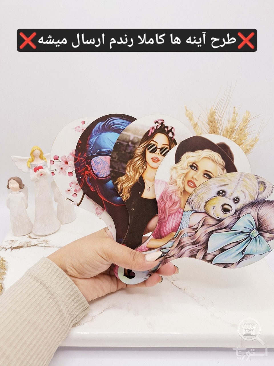 آینه چوبی دسته دار مدل دایره ای ارسال رندم
