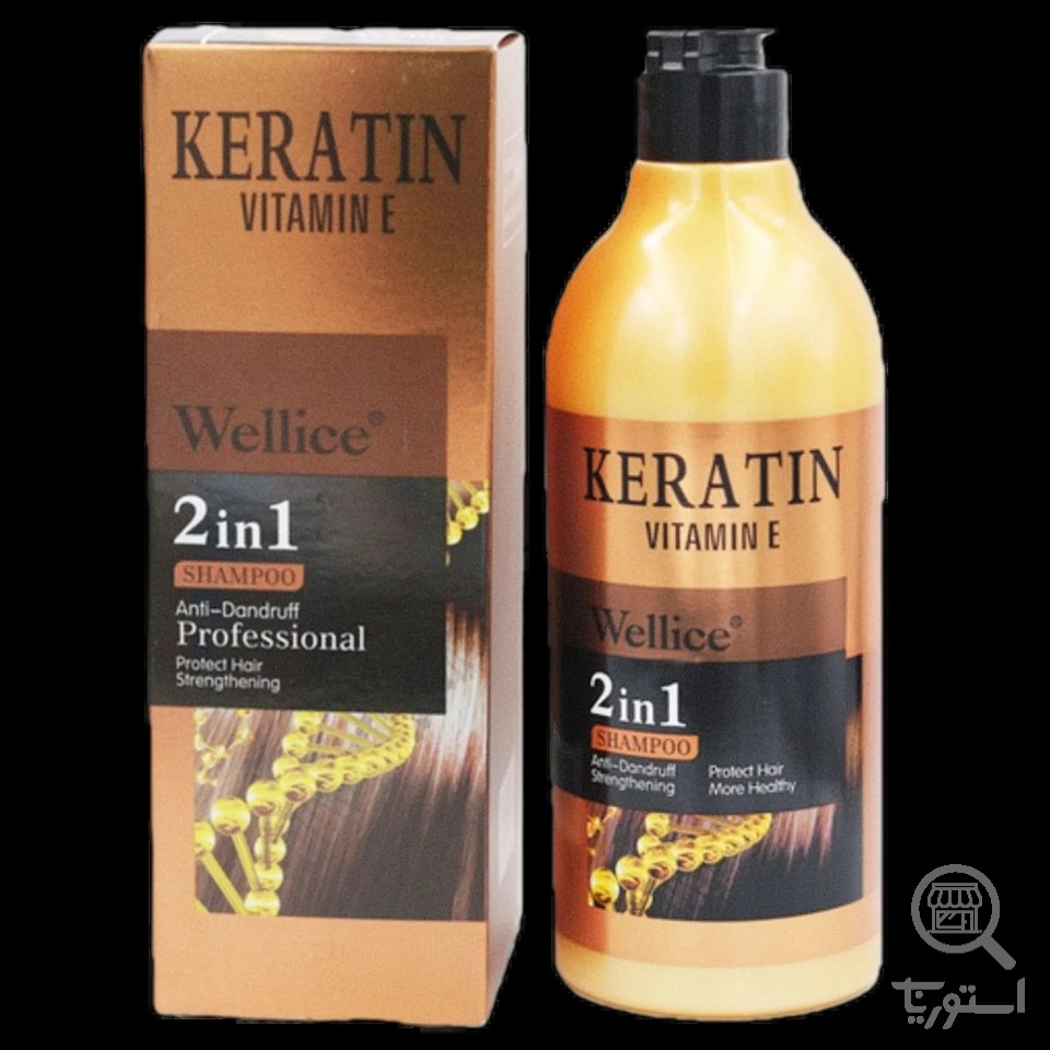 شامپو Wellice مدل KERATIN VITAMIN E 2 in 1 حجم 520 میلیلیتر
