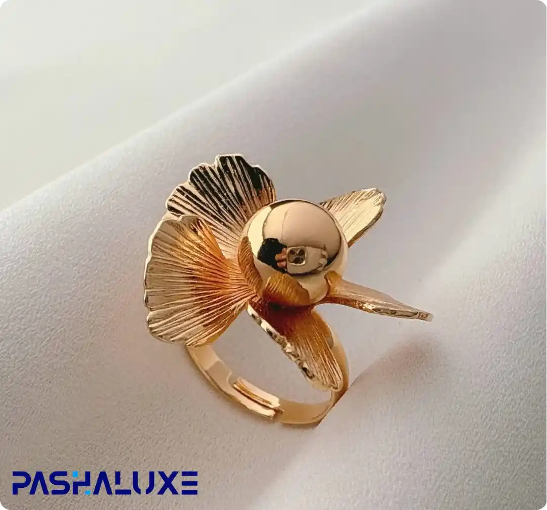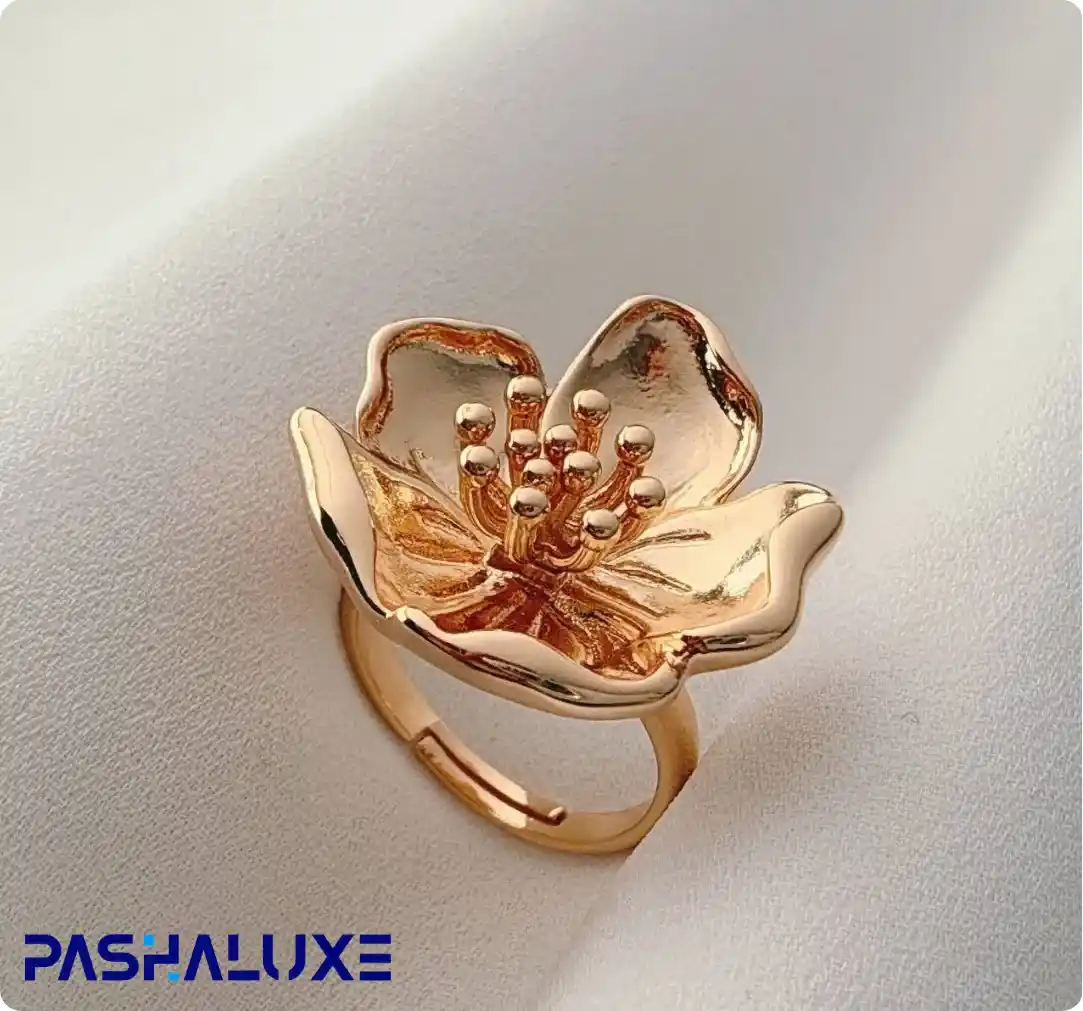 انگشتر زنانه طرح طلا رنگ ثابت مدل گل - بدون حساسیت