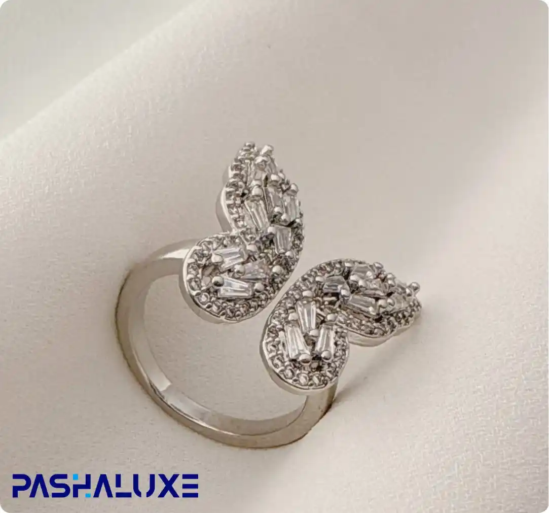انگشتر زنانه طرح جواهر مدل پروانه نگین دار - رنگ ثابت