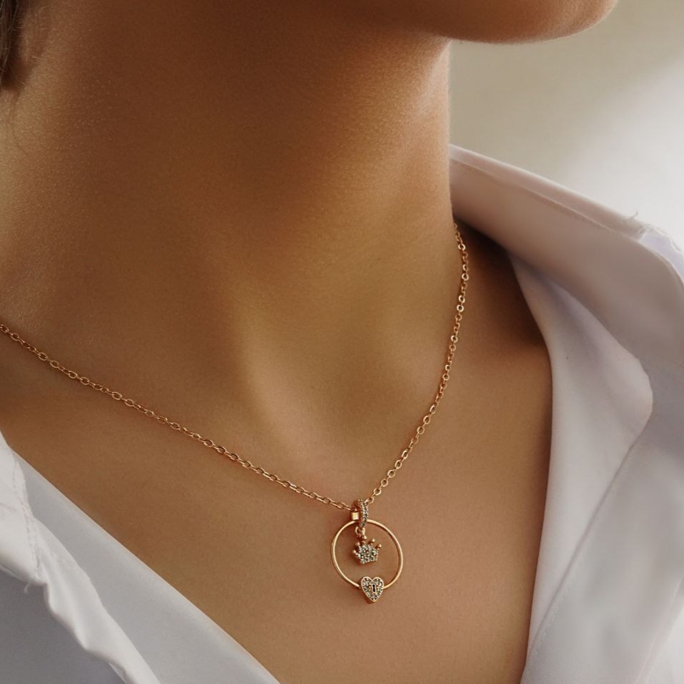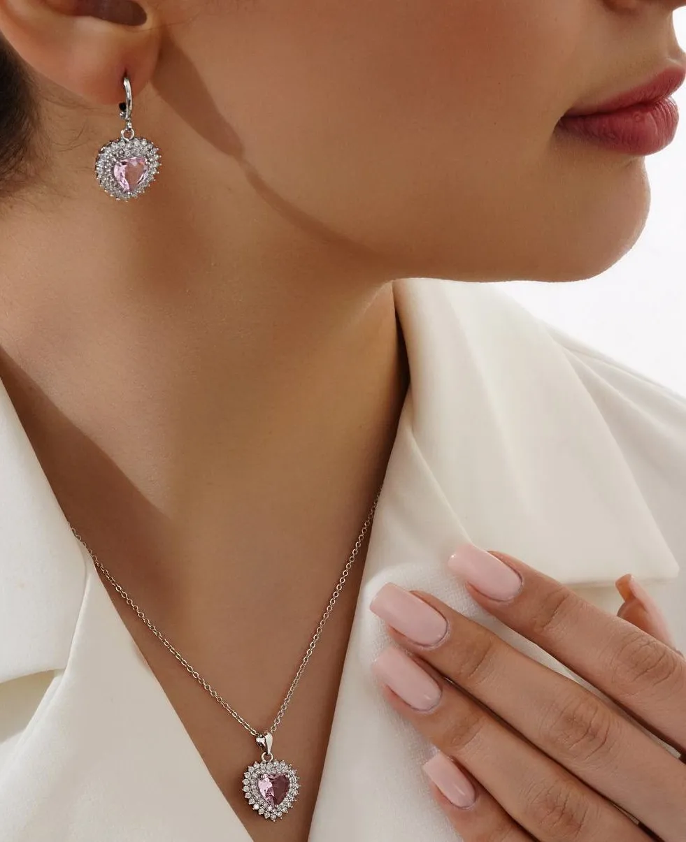 نیم ست زنانه مدل نگین قلبی برند YSX - جنس فلز مس رنگ ثابت بدون حساسیت