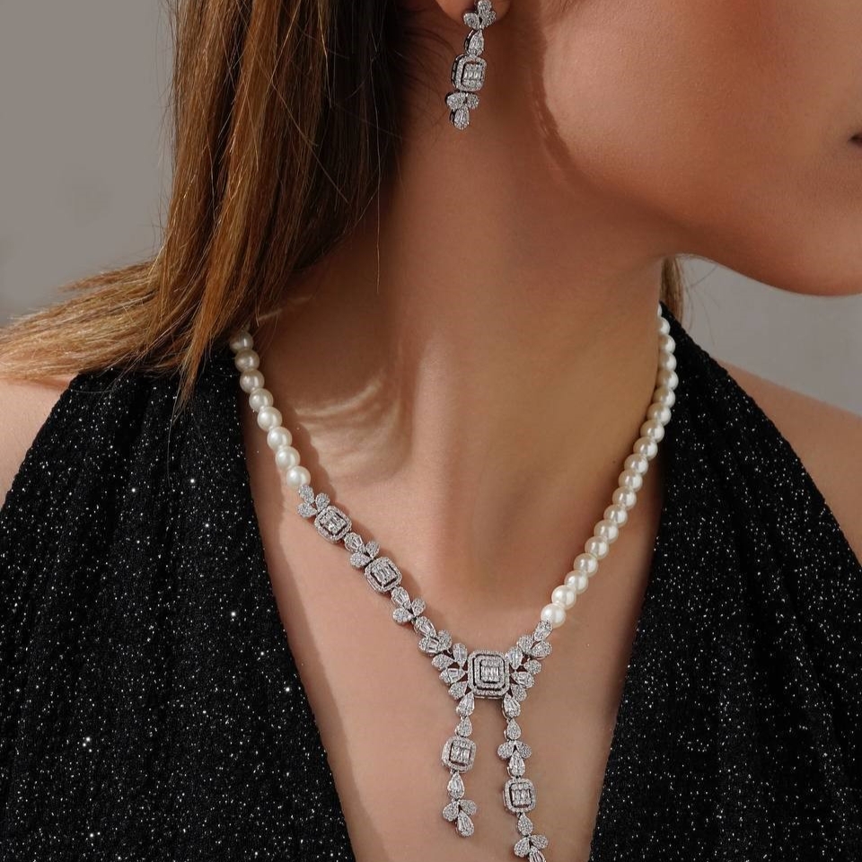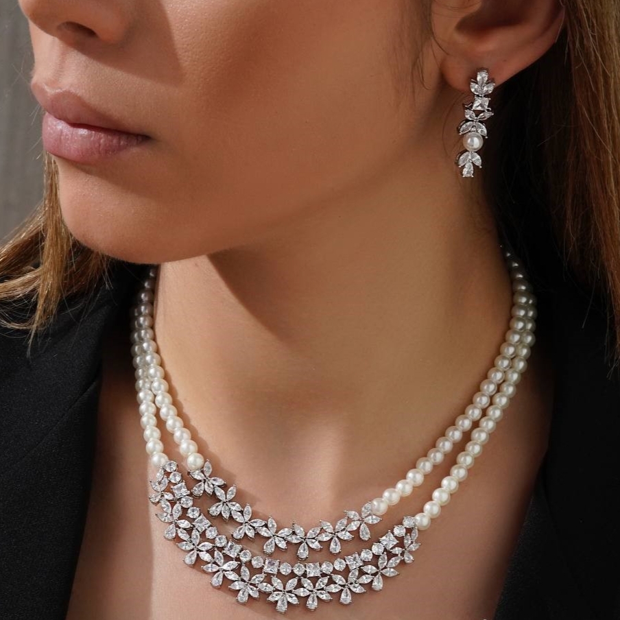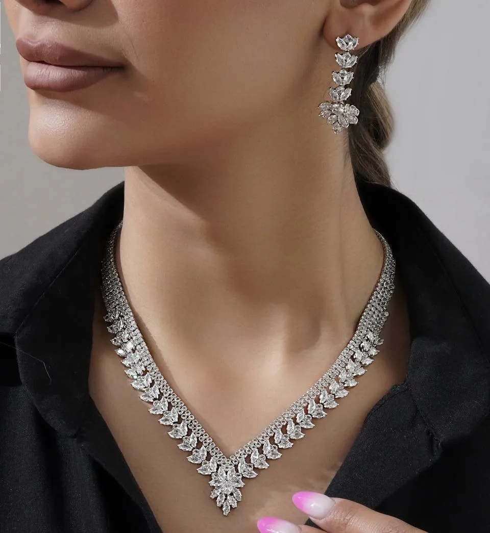 نیم ست زنانه طرح جواهر نگین دار رنگ ثابت، ضد حساسیت