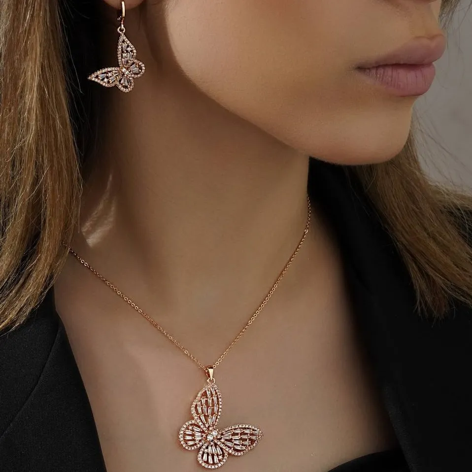 نیم ست زنانه طرح پروانه کاملا مشابه طلا - رنگ ثابت - بدون حساسیت