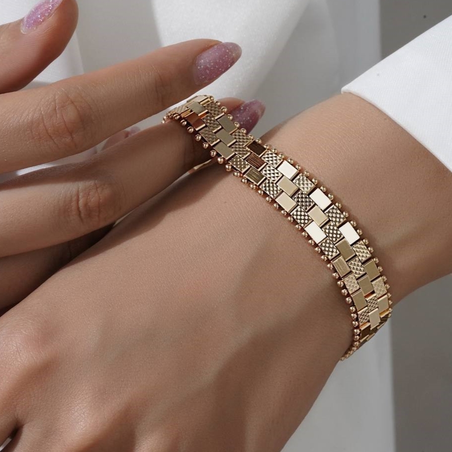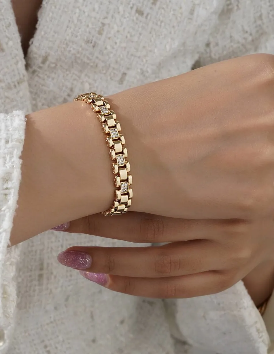 دستبند زنانه طرح طلا مدل رولکس نگین دار برند ژوپینگ