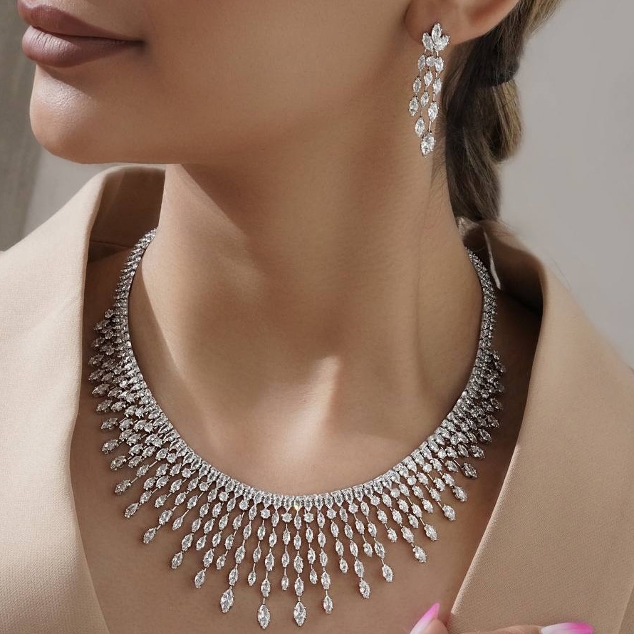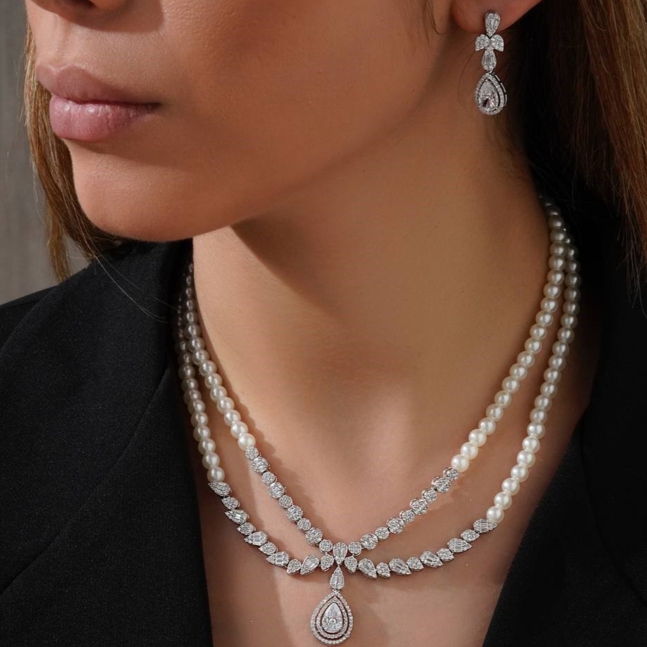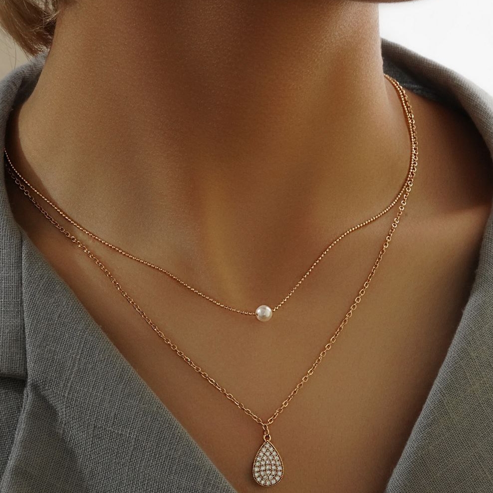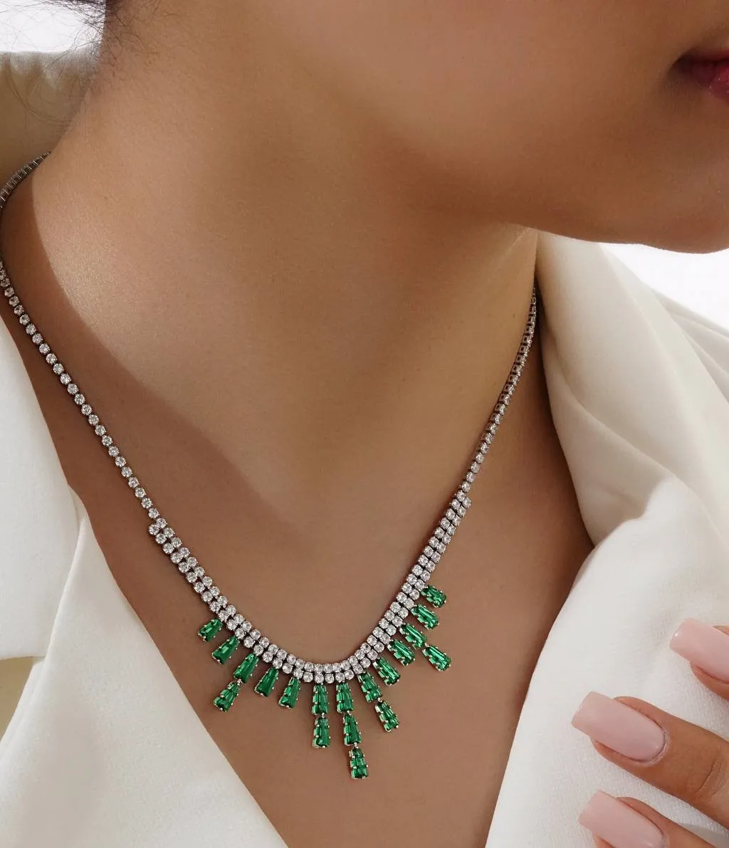 گردنبند تک زنانه فول نگین طرح جواهر جنس استیل