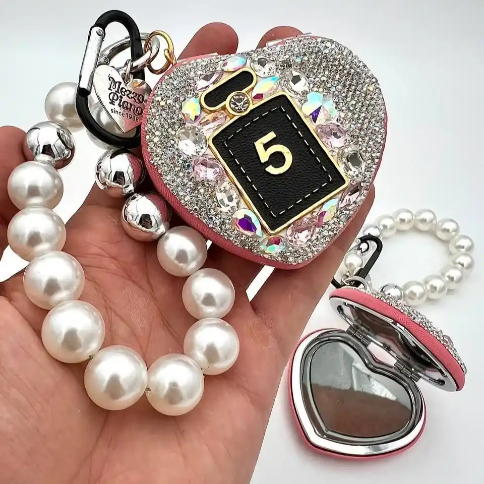 آینه آرایشی زنانه جیبی طرح عطر بند مرواریدی