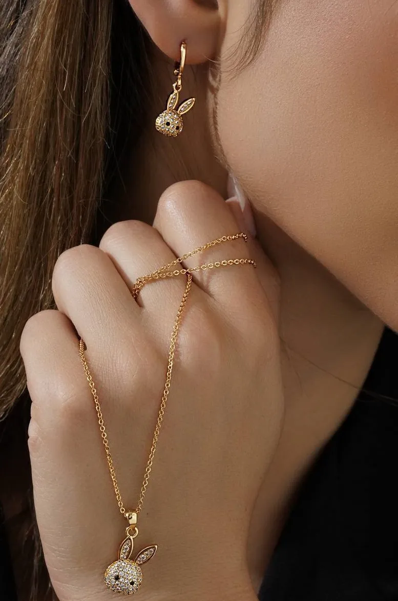 نیم ست زنانه بدلی طرح خرگوش نگین دار - طرح لوکس